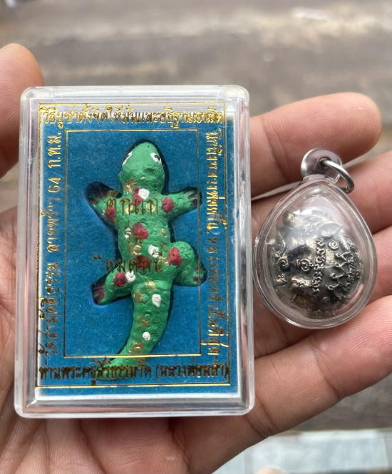 120ตุ๊กแกหมดหนี้หลวงพ่อหล่ำตะกรุดทองคำ พร้อมหมูเลี่ยมมาอีก1ตัว |