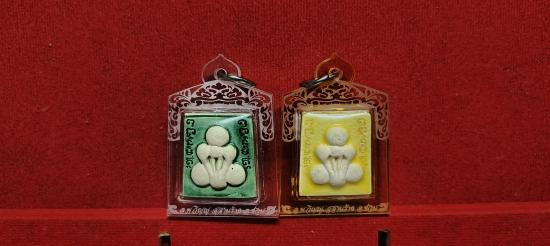 แบ่งปัน ปิดตาผงกระดูกผี หลวงพ่อวิญญู สุสายร้างพนมสารคาม วัดท่าลาดใต้ ชุด2ตน ชุดกระเบื้องเคลือบ7สี กรรมการหลังอัญมณีพลอยเสก สีเขียวเลข173 สีเหลืองเลข73 พร้อมกล่องเดิมๆ ประกันแท้