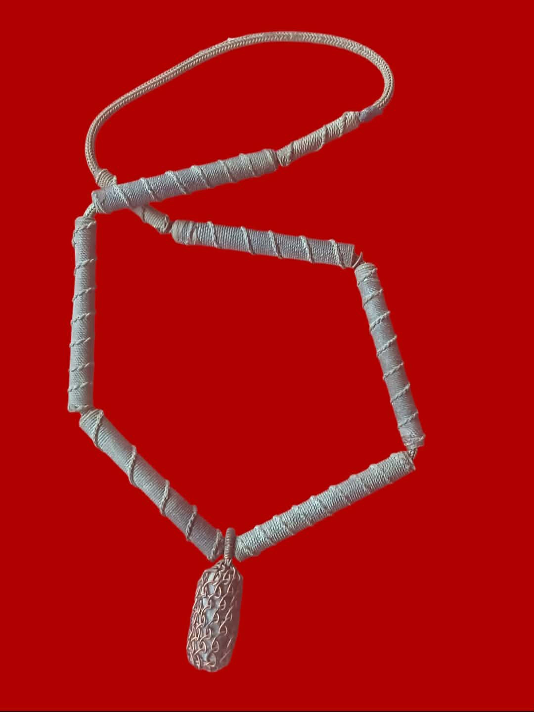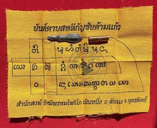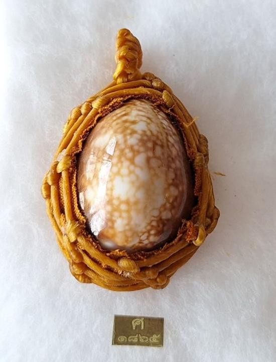เบี้ยแก้ หุ้มจีวร ถักเชือก หลวงปู่ศิลา วัดโพธิ์ศรีสะอาด มีแผ่นเลขกำกับ ฝังตะกรุดทองเหลือง พร้อมใบคาถา ปี2567