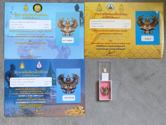 พญาครุฑ รุ่นรวยหมื่นล้าน หลวงพ่อพัฒน์ วัดห้วยด้วน เนื้อนวะโลหะ พิมพ์ใหญ่ สภาพสวยพร้อมติดรางวัลงานใหญ่ สมาคม 3 ใบ |