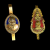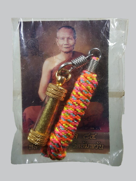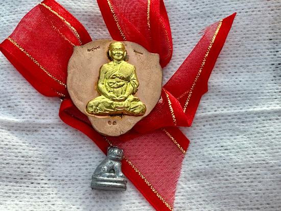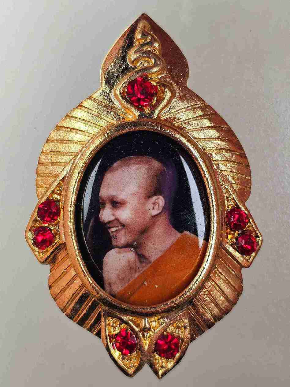 เข็มกลัดล็อกเก็ตของขวัญ หลวงพ่อชำนาญ วัดบางกุฎีทอง ปทุมธานี ปี 2558 เนื้อโลหะชุบทองฝังพลอย |