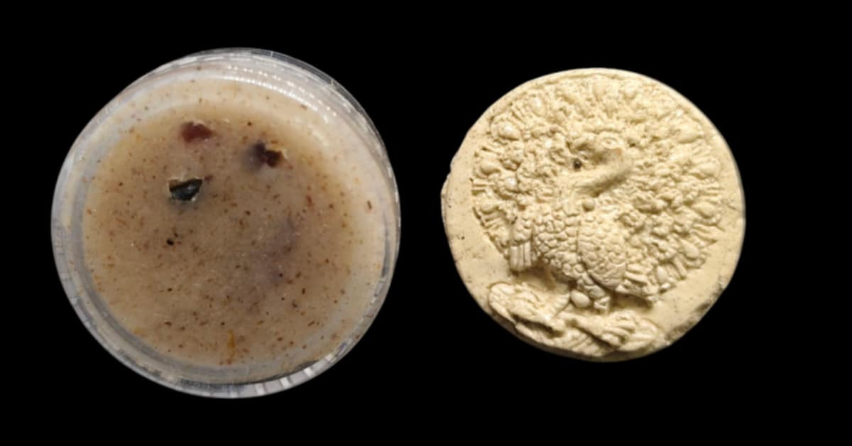 เคาะเดียวแดง พญายูงคำ รุ่นแรก เนื้อเกษรทั้งห้า และ สีผึ้งเนื้อหอม รังผึ้งร้าง ขวางเดือนขวางตะวัน รุ่นแรก ในเมตตาบารมี เจ้าปู่จั่นต่า กาวิสาละ พญานกยูง ขนาดเท่าเหรียญสิบบาท ครูบากฤษดา เมตตาเษก |