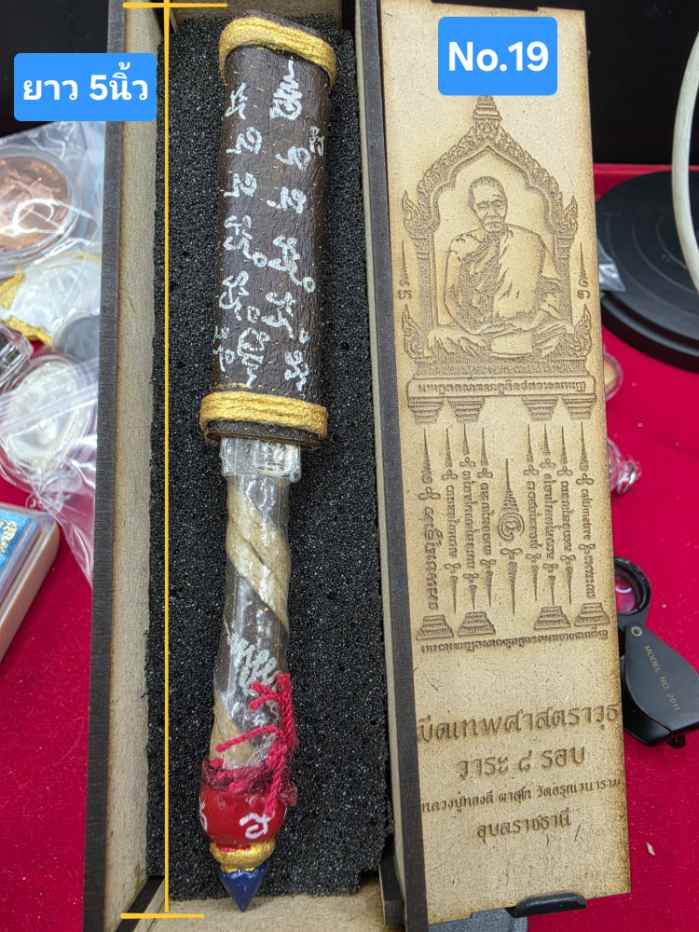 มีดหมอหนังช้างแท้ 2หน้า ลายมหายันต์ กับ นาคเกี้ยว No.19วาระ 8 รอบหลวงปู่ทองดี จังหวัดอุบลราชธานี พร้อมกล่องไม้เดิมๆ |