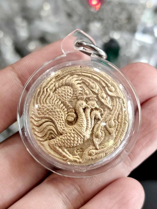 พญายูงคำนำโชค ครูบาออ รุ่น 3 นกยูงสามหัว กรรมการ ด้านหน้าทาทอง ด้านหลังทาเงินเลี่ยมกันน้ำพร้อมใช้ เนื้อผงพุทธคุณตำรับหอคำหลวง |