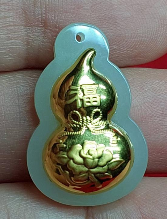 จี้หยกรูปทรงน้ำเต้า "หยกเหอเถียน" หน้ากากทองคำแท้ สูง 1 นิ้ว |