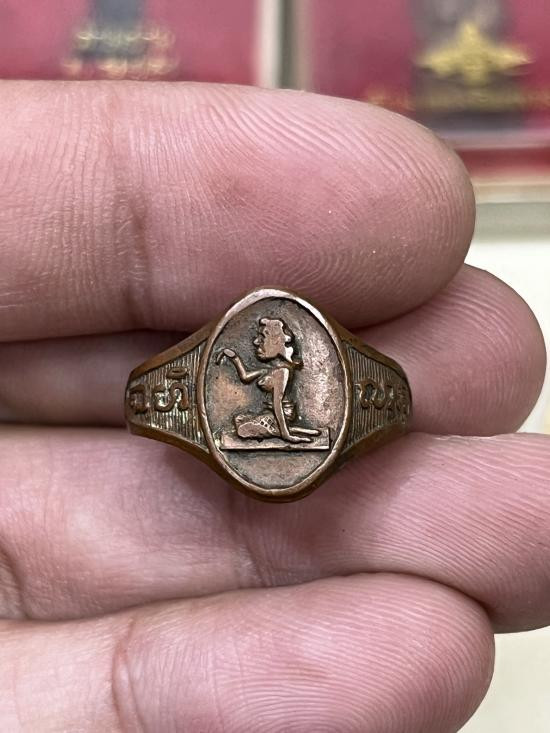 แหวนปั้มนางกวักข้างยันต์ เนื้อทองแดง เก่า ปีลึกๆ ไม่ทราบสำนัก |