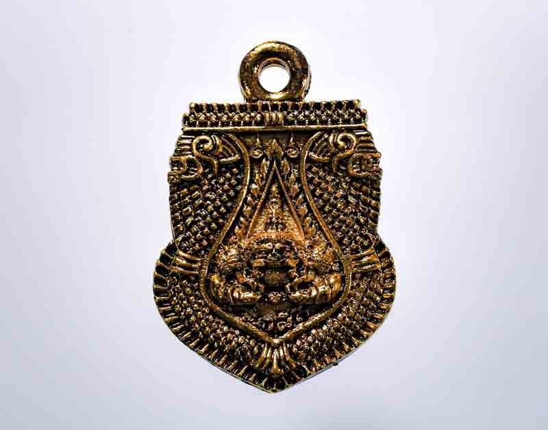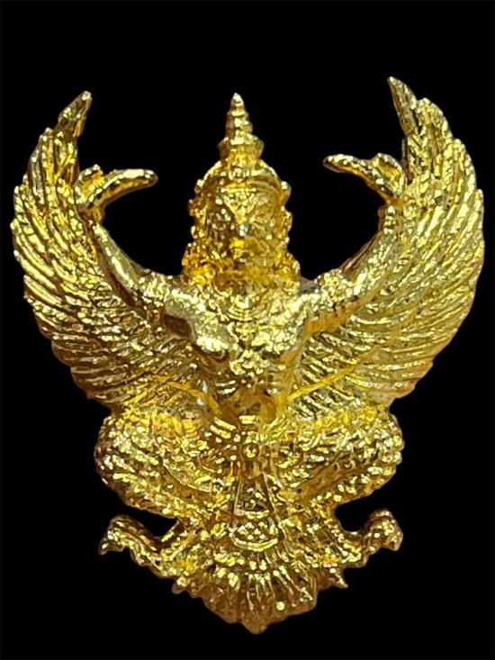 พญาครุฑ รุ่นอกแอ่นหลัง ว. มีบุญ มีวาสนา หลวงพ่อวราห์ วัดโพธิทอง เนื้อกะไหล่ทอง ปี 2541 สภาพสวยเดิม กล่องเดิม |