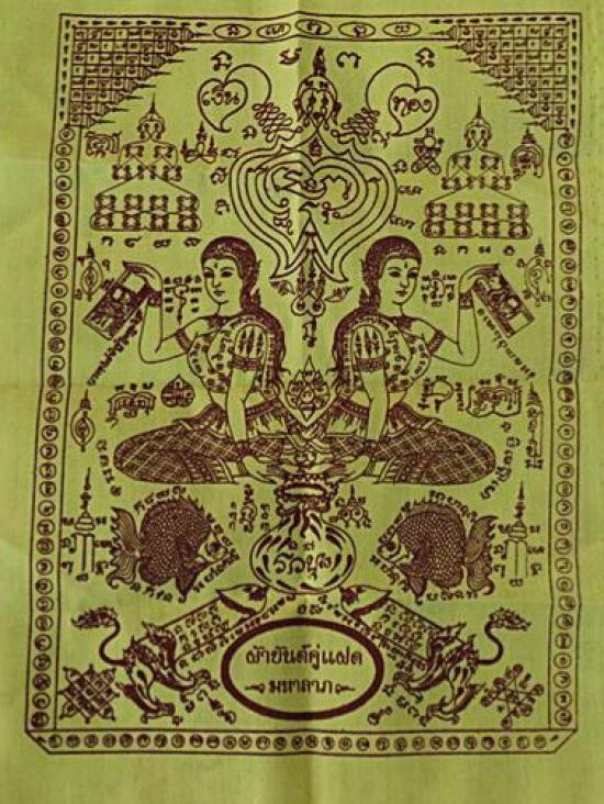 ผ้ายันต์สีเหลืองนางกวักคู่แฝดมหาลาภ วัดสว่างภพ จ ปทุมธานี |