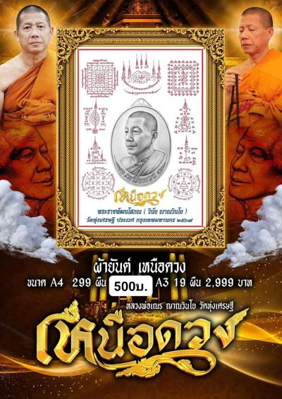 ผ้ายันต์เหนือดวง ขนาดA4 หลวงพ่อเณร วัดทุ่งเศรษฐี กรุงเทพฯ หลวงปู่มหาศิลา หลวงปู่เวิน หลวงปู่มหาตุ่ม หลวงพ่อสุริยันต์ ร่วมปลุกเสก |
