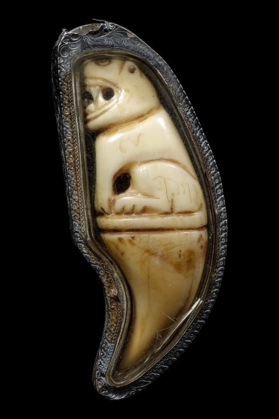 ราหูอมจันทร์ งาแกะทรงจันทร์ลอยเต็มดวง หลังจาร สายวัดศีรษะทอง เนื้อเก่าฉ่ำ แห้งสนิท ได้อายุ |