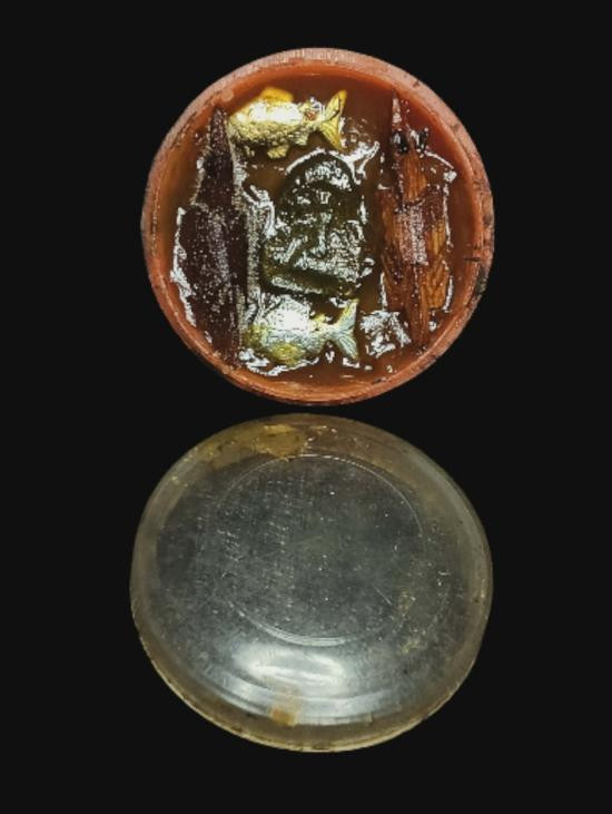 สาริกาคู่ หลวงพ่อเคน วัดถ้ำเขาอีโต้ ปราจีนบุรี ในตลับสีผึ้งจากวัด บรรจุ แม่นางกวัก ปลาตะเพียนทอง ปลาตะเพียนเงิน เก่าถึงยุค สวยสมบูรณ์ครับ |