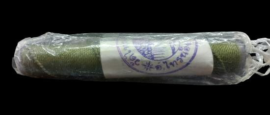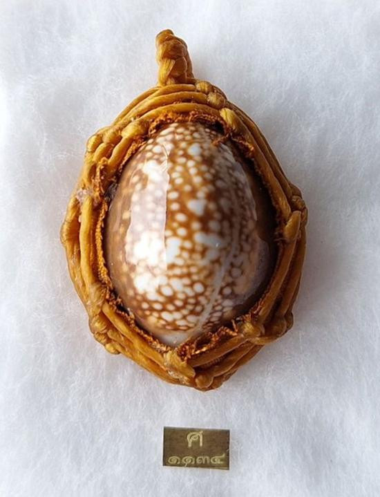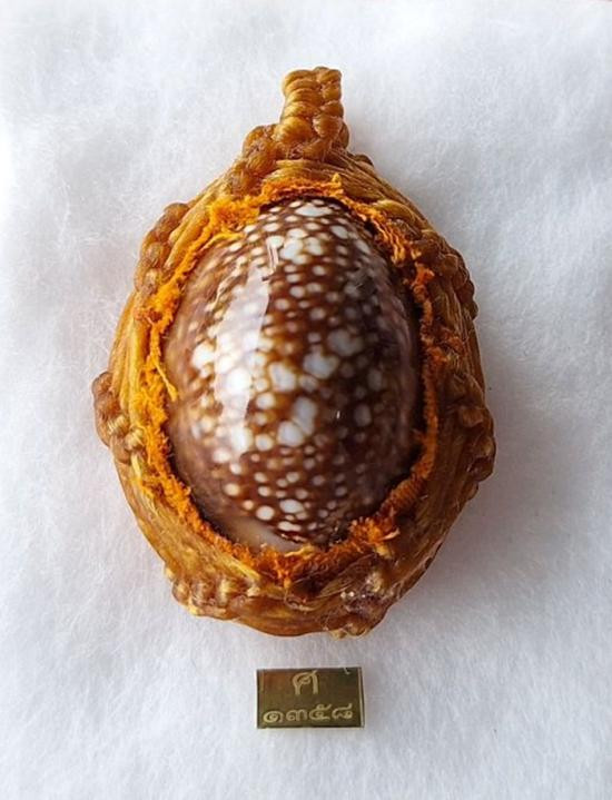 เบี้ยแก้ หุ้มจีวร ถักเชือก หลวงปู่ศิลา วัดโพธิ์ศรีสะอาด มีแผ่นเลขกำกับ ฝังตะกรุดทองเหลือง พร้อมใบคาถา ปี2567 |