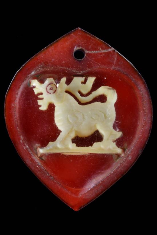 เคาะเดียวแดง 100 ตั่วแปะ หยี่แปะ (ยมฑูตขาว ยมฑูตดำ) พ่อท่านผ่อง วัดแจ้ง จ.พัทลุง เนื้อผงงาช้างผสมว่าน โรยผงทอง ผงพลอย กล่องเดิม |