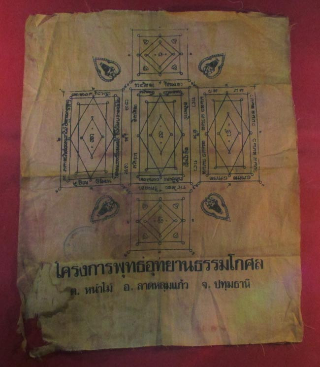 ผ้ายันต์ โครงการพุทธอุทยานธรรมโกศล ต.หน้าไม้ อ.ลาดหลุมแก้ว จ.ปทุมธานี ครับ (พระบ้าน ครับ) |
