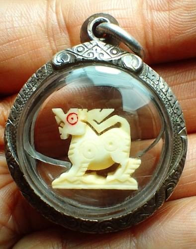 200.สิงค์งาแกะหลวงพ่อแดง เลี่ยมตลับเงินเก่า |