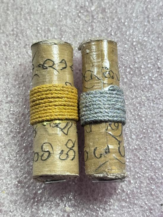 -วัดใจเคาะเดียวแดง-ตะกรุดใบลานอุดกริ่ง รุ่นรวยล้าน๖๘ ถักเชือกเงิน-เชือกทอง ปิดแผ่นเงินหลวงปู่มหาศิลา (ฉีกซองถ่ายรูป ) |