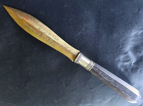 +!!เคาะเดียวllดง ตลอดสาย!!+ มีดหมอหวายอาคม ขนาด 5 นิ้ว รุ่นชาติพยัคฆ์ หลวงพ่อเมียน วัดบ้านจะเนียง จ.บุรีรัมย์ จารเต็มและเลขโค้ดสวยๆตามรูป พร้อมกล่องครับ |