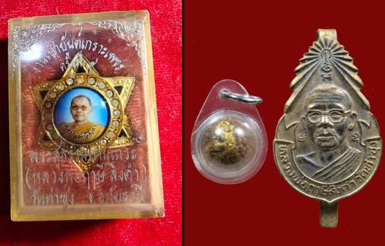 วัดใจ 590.เข็มกลัด ดาวหกแฉก หลวงพ่อฤาษีลิงดำ วัดท่าซุง พิธีเป่ายันต์เกราะเพชร ครั้งที่ 5 + ชานหมากชาตรี+แหนบรุ่น4หลวงพ่อฤาษีลิงดํา |