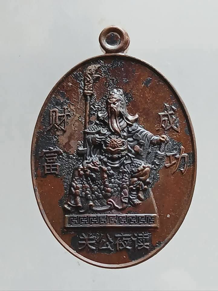เคาะเดียวท่านกวนอู ด้านหลัง ยันต์ดวงพิชิตชะตา หลวงพ่อพิณ จ.ราชบุรี เนื้อทองแดงฉนวน |