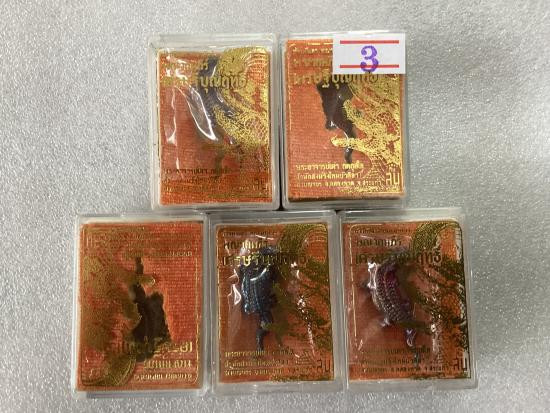 พระพิราพนั่งถือหอกจำนวน 5 องค์ ออกในงานไหว้ครูพ.ศ.2555 พระอาจารย์อึ่ง วัดเซิงหวาย ปรางนี้ออกแบบสวยมากเก็บรักษาอย่างดีเนื้อตะกั่ว จัมโบ้ โค๊ตชัดเจนรับประกันตามกฏครับ |