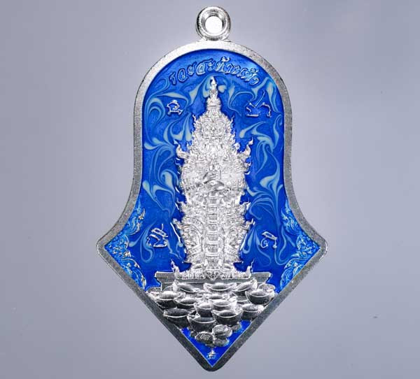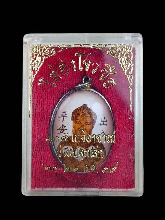 วัดใจ-เทพเจ้าไฉ่ซิงเอี้ย วัดเล่งเน่ยยี่ (วัดมังกรกมลาวาส) รุ่นหลัง ยันต์แปดทิศ สิงโตคาบดาบทรงพลัง เนื้อเงินลงยา เลี่ยมทองแท้