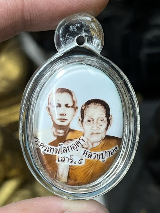 ล็อกเก็ตหลวงปู่กอง หลวงปู่เทพโลกอุดร เสาร์ห้า วัดสระมณฑล หลังมวลสาร เลี่ยมกันน้ำเก่า สร้างน้อย |
