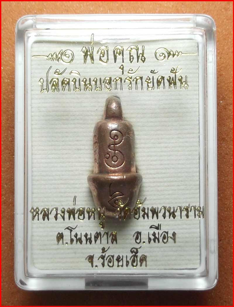 พ่อคุณปลัดบินบอกรักยัดฟัน หลวงพ่อหนู วัดอัมพวนาราม จ.ร้อยเอ็ด เนื้อทองสายไฟล่อ หมายเลข 1244 เสน่ห์ เมตตา ค้าขายดี