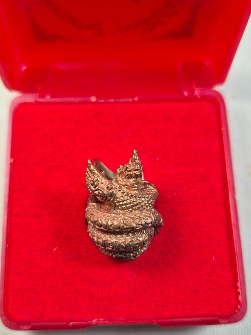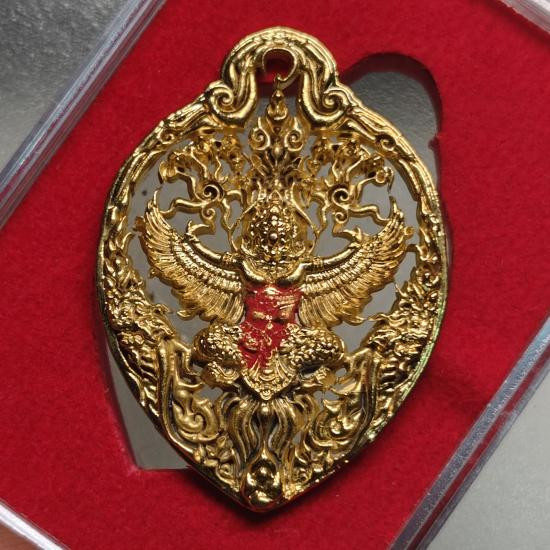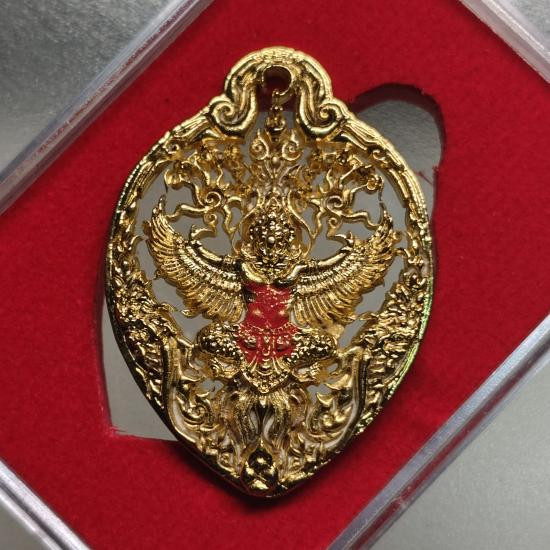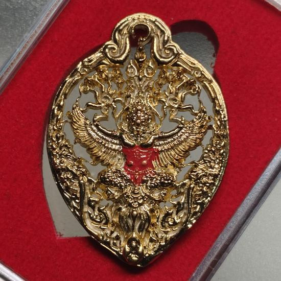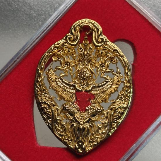 เคาะเดียวแดง 100 พญาครุฑเศรษฐีเงินไหลมา วัดพระมหาธาตุ วรมหาวิหาร จ.นครศรีธรรมราช พมพ์เล็ก สูง 3 ซ.ม. เนื้อทองกายทิพย์รมมันปู กล่องเดิม ( แจกในพิธี )