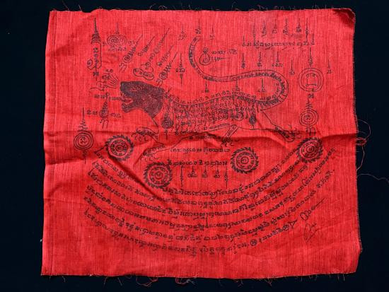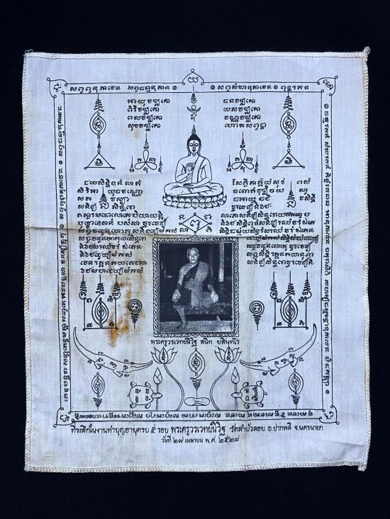 ***ผ้ายันต์กันฟ้า ขนาด 6x16 นิ้ว หลวงพ่อผิว วัดสง่างาม จ.ปราจีนบุรี ปี 2515***
