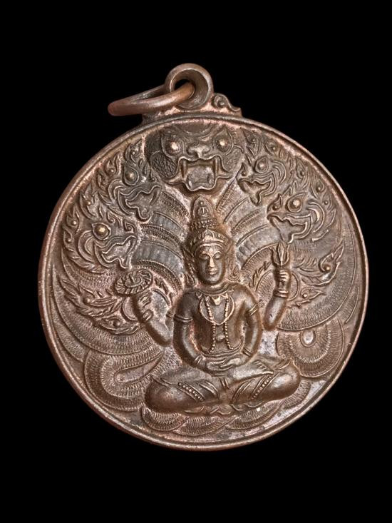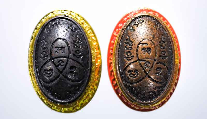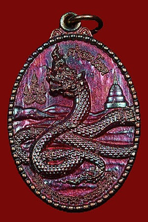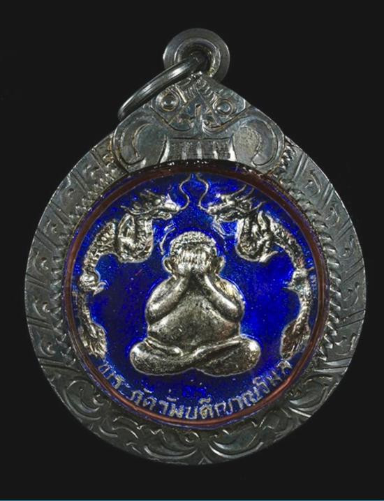 เหรียญปิดตามังกรคู่ วัดศาลาครืนทองแดงกะไหล่เงินลงยาน้ำเงิน เลี่ยมเงิน |