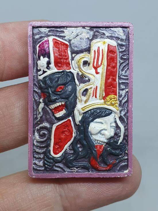 ตั่วแปะหยี่แปะ (ยมฑูตขาว ยมฑูตดำ) พ่อท่านผ่อง วัดแจ้ง จังหวัดพัทลุง เนื้อมหาว่านขาว เพ้นท์สี หลังฝังตะกรุดเงิน ฝังพลอย |