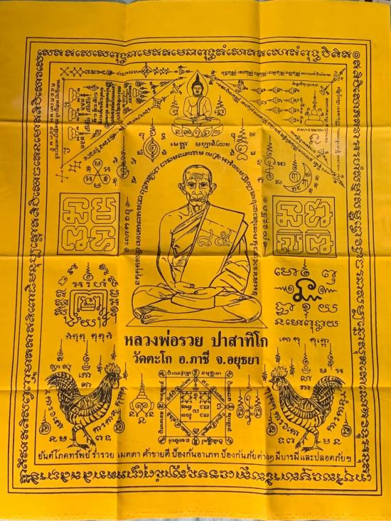 ((แดงที่100))ผ้ายันต์ผืนใหญ่ ไก่คู่นั่งเต็มองค์ หลวงพ่อรวย วัดตะโก ปี2549 ((มีแป้งเจิมหลวงพ่อรวย)) ขนาด 18 นิ้ว X 22 นิ้ว |