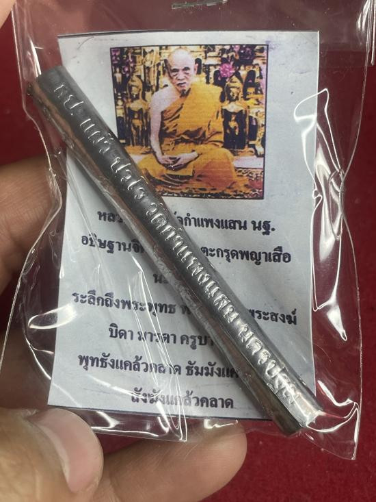 หลวงปู่แผ้ว ปวโร ตะกรุดพญาเสือ เนื้อตะกั่ว พร้อมใบฝอย ปี 58 |