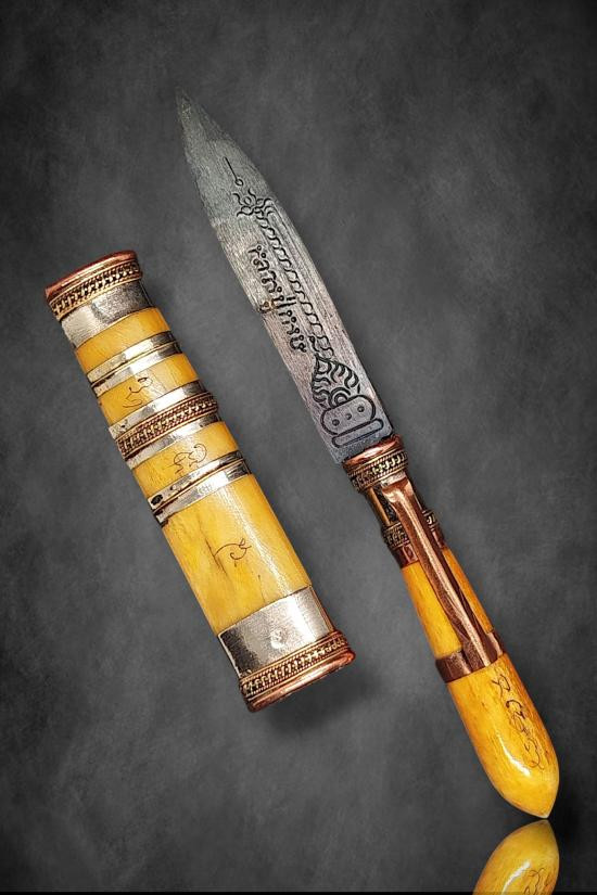 วัดใจ300มีดหมอเก่าสวยขลังพลังมีได้มาจากพระอาจารย์ลงอีกขระที่ใบมีดและฝักยาว9นิ้ว |
