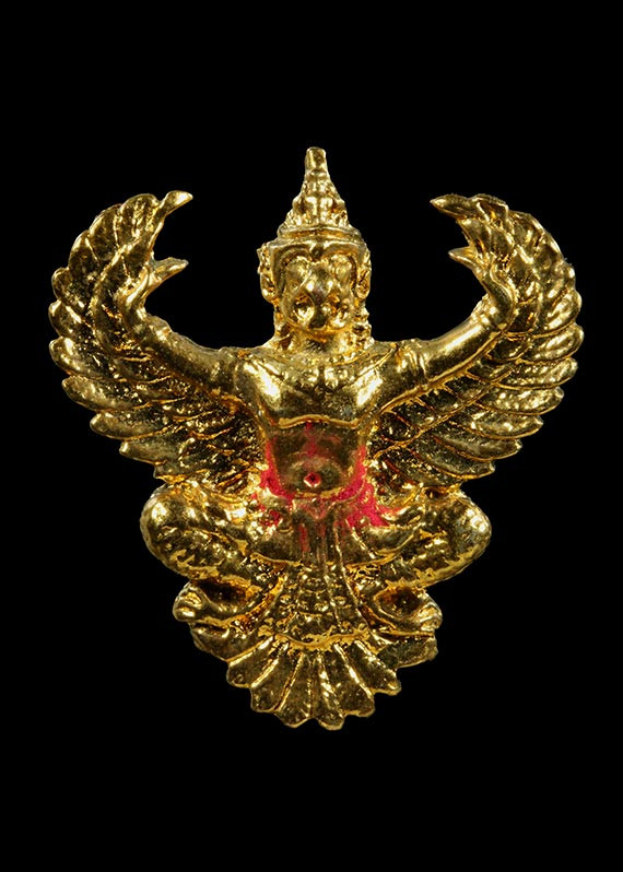 เคาะเดียวแดง 100 พญาครุฑมังรายศาสตร์ เศรษฐีอนันตทรัพย์ พระอาจารย์วิรุต วัดสันมะเหม้า จ.เชียงราย เนื้อสัมฤทธิ์ชุบทองขัดเงาบางส่วน พิมพ์เล็ก สูง 3 ซ.ม. กล่องเดิม |