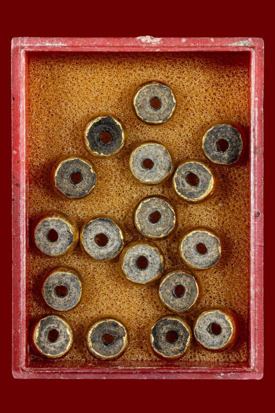 เม็ดปนระคำปราบหงสา หุ้มด้วยทองคำเก่า |