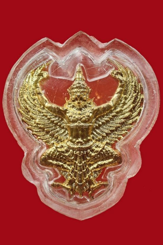 เคาะแรกแดง+ พญาครุฑ พระอาจารย์วราห์ วัดโพธิทอง รุ่นฉลองโบสถ์ เนื้อชุบทอง ปี2561 |