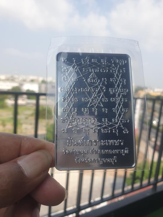 แผ่นยันต์เกราะเพชร รุ่น ๒ เนื้อปีกเครื่องบิน แผ่นเล็ก ยาว ๔ ซม. หลวงพ่อเล็ก วัดท่าขนุน |