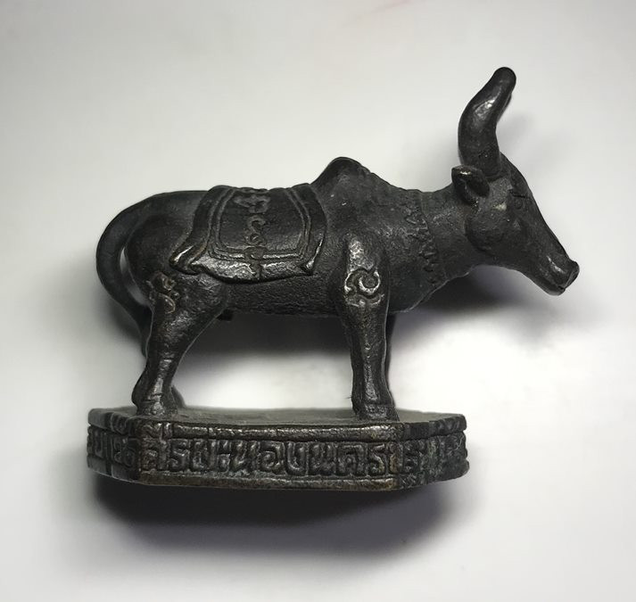 ท้าวเวสสุวรรณ หลวงปู่หงษ์ วัดสุสานทุ่งมน เนื้อทองเหลืองรมดำ ก้นอุดผงพุทธคุณ ปี 2556 จ.สุรินทร์ |