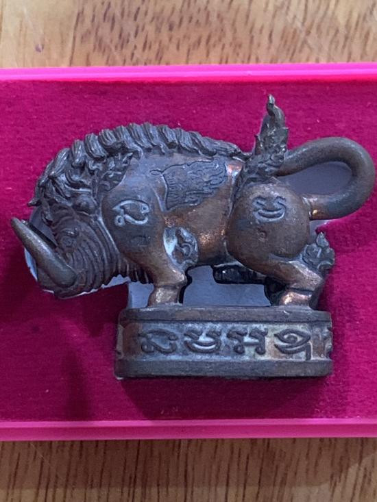 1 ใน 441 พญาหมูพลิกชะตา รุ่นรวยร่ำซำ หลวงปู่บุดดา วัดป่าใต้พัฒนาราม จ.สระแก้ว. รุ่นรวยล่ำซำ เนื้อทองแดงเถื่อนอุดผงมวลสารฝังตะกรุดทองฝาบาตร1 ดอก เลขสวย 231 ตัวใหญ่ หนา สวยมาก กล่องเดิมครับ |
