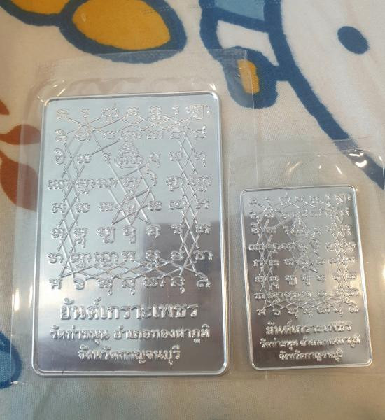แผ่นยันต์เกราะเพชร รุ่น ๒ เนื้อปีกเครื่องบิน แผ่นใหญ่+แผ่นเล็ก หลวงพ่อเล็ก วัดท่าขนุน