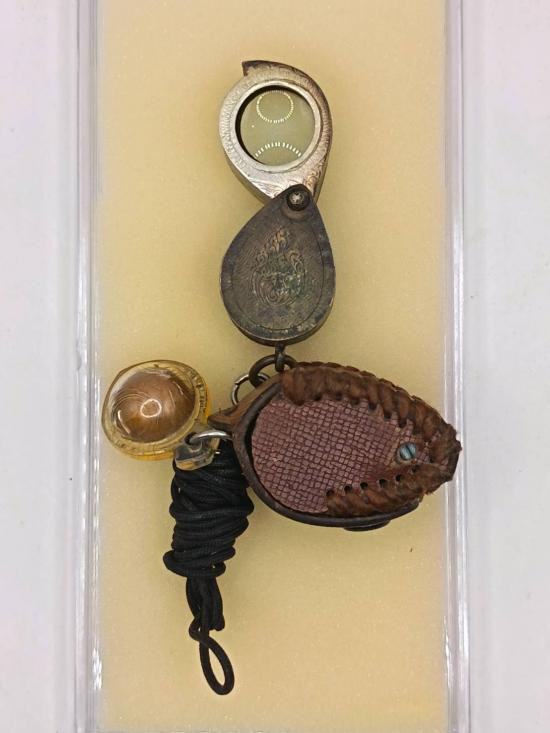ไม่ได้ใช้หลายปีแล้วครับ กล้องส่องพระตัวเลนส์ Bausch & Lomb 10x ตัวเรือนเป็นเงินสั่งทำ พร้อมซองหนัง เชือกห้อยคอ แถมลูกอมผงพรายกุมารหลวงพ่อสาคร พร้อมใช้งานได้เลย |