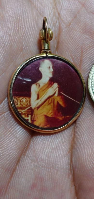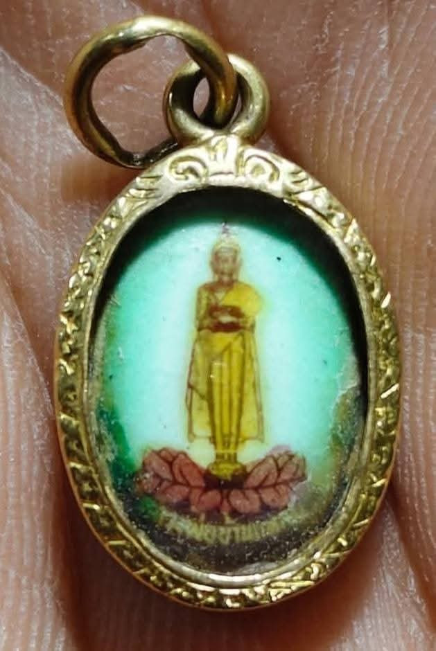ล็อกเก็ตหลวงพ่อวัดบ้านแหลม รุ่นแรกปี 2500 ฉากเขียวเหนี่ยวทรัพย์หายาก เลี่ยมทอง |