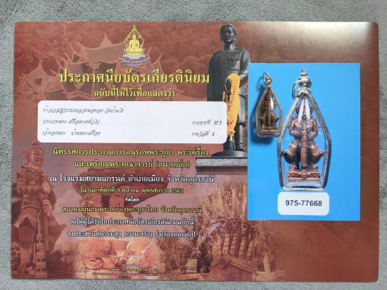 วัดใจกันไปเนื้อสัมฤทธิเดช๑๑๑๑พญาครุฑรรุ่น1วัดพระแก้วหายากปลุกเสกวัดพระแก้วปี40//พญาครุฑกำลังแผ่นดิน คุ้มภัยคุ้มทรัพย์เจริญลาภ มหาอำนาจ ล้างอาถรรพ์ พิธีมหาพุทธาภิเษกวัดพระศรีรัตนศาสดาราม 15 พค. 2540 พญ |
