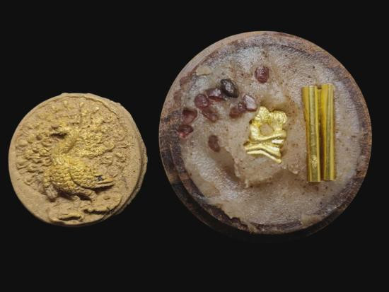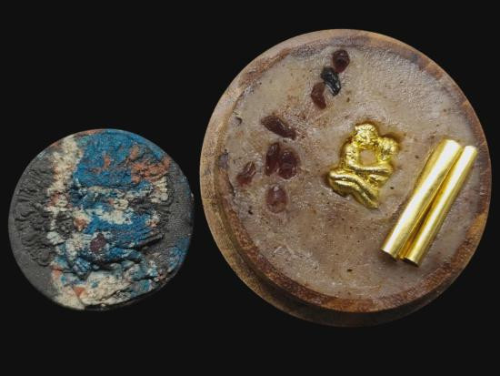 เคาะเดียวแดง พญายูงคำ รุ่นแรก เนื้อก้นครก และ ตลับไม้สีผึ้งเนื้อหอม รังผึ้งร้าง ขวางเดือนขวางตะวัน รุ่นแรก ฝังอิ่น ตะกรุด ในเมตตาบารมี เจ้าปู่จั่นต่า กาวิสาละ ครูบากฤษดา เมตตาเษก |