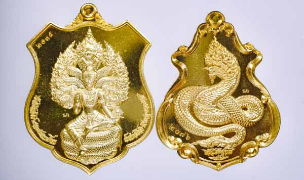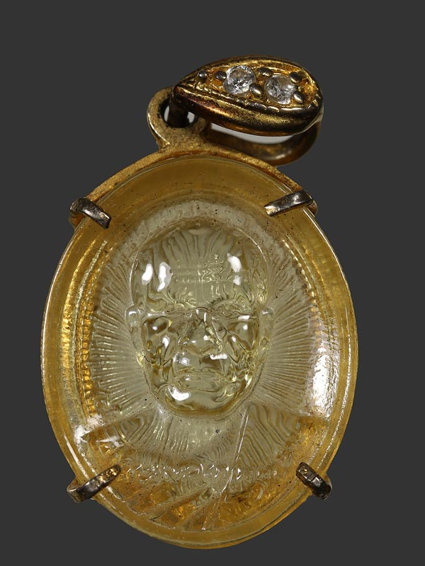 ล็อกเก็ตหลวงพ่อวัดบ้านแหลม รุ่นแรกปี 2500 ฉากเขียวเหนี่ยวทรัพย์หายาก เลี่ยมทอง |