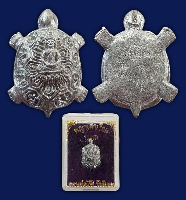 เบี้ยแก้ หลวงปู่ศิลา หุ้มกรอบชุบเงินซาติน รุ่นปาฏิหาริย์ พลิกชีวิต วัดโพธิ์ศรีสะอาด จ.กาฬสินธุ์ หมายเลข 1466 กล่องเดิม |