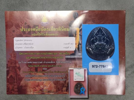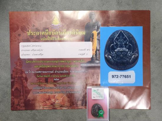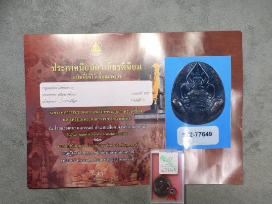 พญาครุฑมหาอำนาจ รุ่นสมปราถนา หลวงปู่โสฬส วัดโคกอู่ทอง เนื้อทองแดงรมดำ ตอกโค้ด หมายเลข 3222 สภาพสวย |