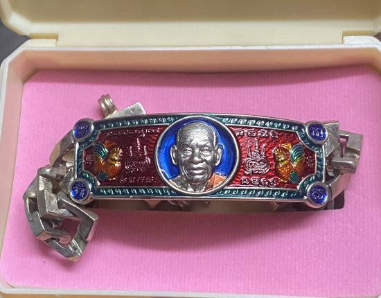 เลสข้อมือเนื้อเงินลงยาไตรมาส๕๙ รวย รวย รวย หลวงพ่อรวย วัดตะโก จ.พระนครศรีอยุธยา ปี๒๕๕๙ (กล่องเดิม) |