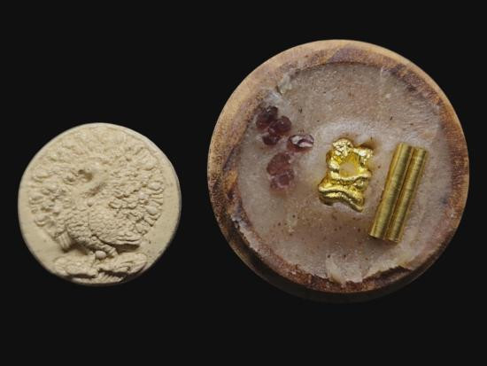 เคาะแรกแดง+ สิงห์ งาแกะ ไม่ทราบที่ ขนาดฐาน1ซม.ครับ |